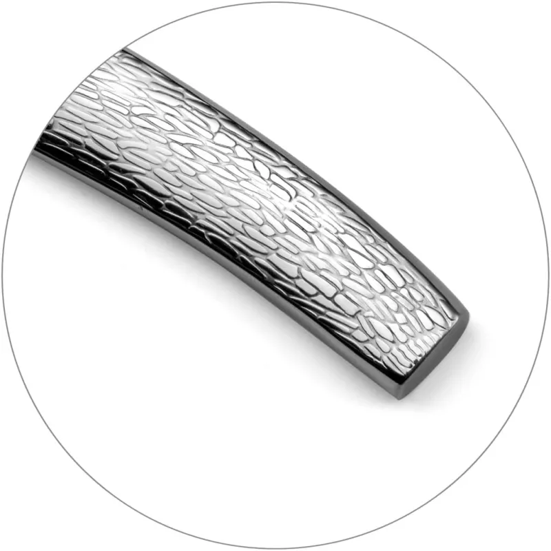Manche en acier massif gravé façon écorce.