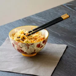PECHINO LINE Set De 2 Bols Coupelle En Grès D11.5 300 Ml Avec Baguettes Décor Rouge WD Lifestyle