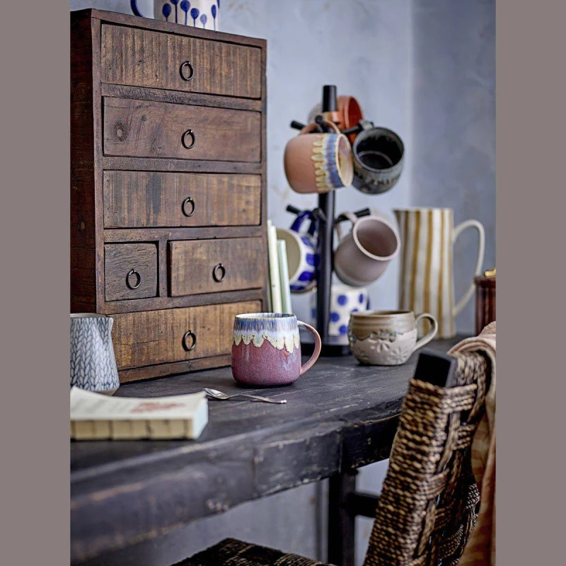 Réalisé à la main et recouvert d’un émaillage réactif, chaque set de mugs est unique.