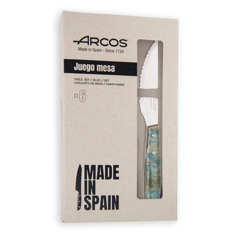 Le manche en bois compressé et riveté aux reflets bleutés permet une meilleure résistance aux effets du lave-vaisselle et offre un design original qui apportera une touche de couleur à votre table.