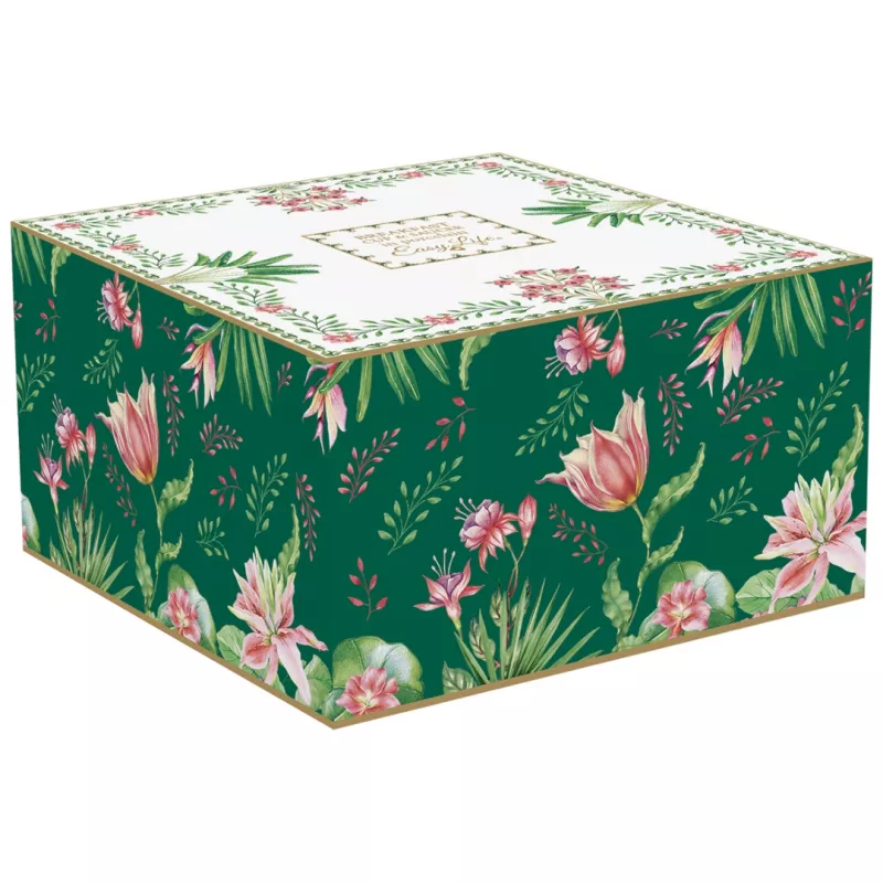 Apportez une touche de fraîcheur à vos matinées avec la tasse de déjeuner de 40 cl et sa sous-tasse assortie, issues de la collection « Botanic Chic » en vert et rose.