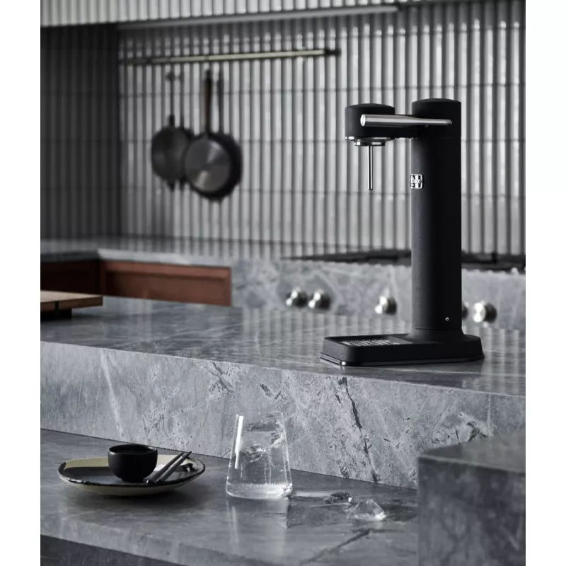 Très pratique le Carbonator 3 fonctionne avec les bouteilles de CO₂ standard, permettant une gazéification écologique et efficace par simple pression d’un levier.